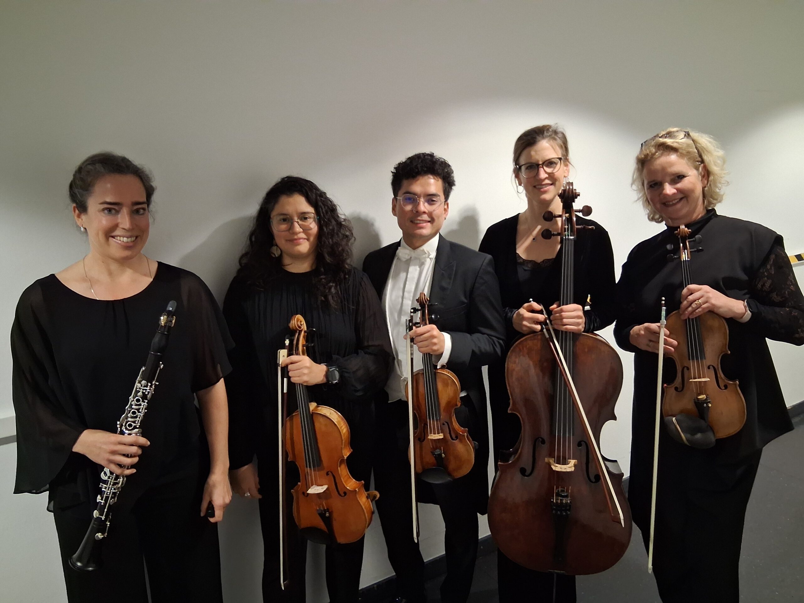 Es musiziert das Streichquartett der Bamberger Symphoniker mit Dagmar Puttkammer und Benjamin Gattuz (Violine), Paulina Diaz Riquelme (Viola) sowie Lucie de Roos (Violoncello) gemeinsam mit der Klarinettistin Lina Neuloh.